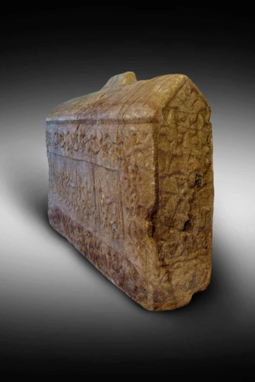 A FINELY CARVED LIMESTONE DOUBLE-SIDED