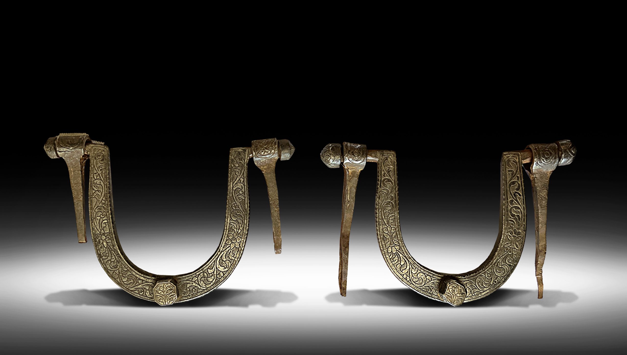 A pair of door handles from southeast Anatolia simply in a form of a crescent with open work motifs and charm arabesques with attached nails on each side.