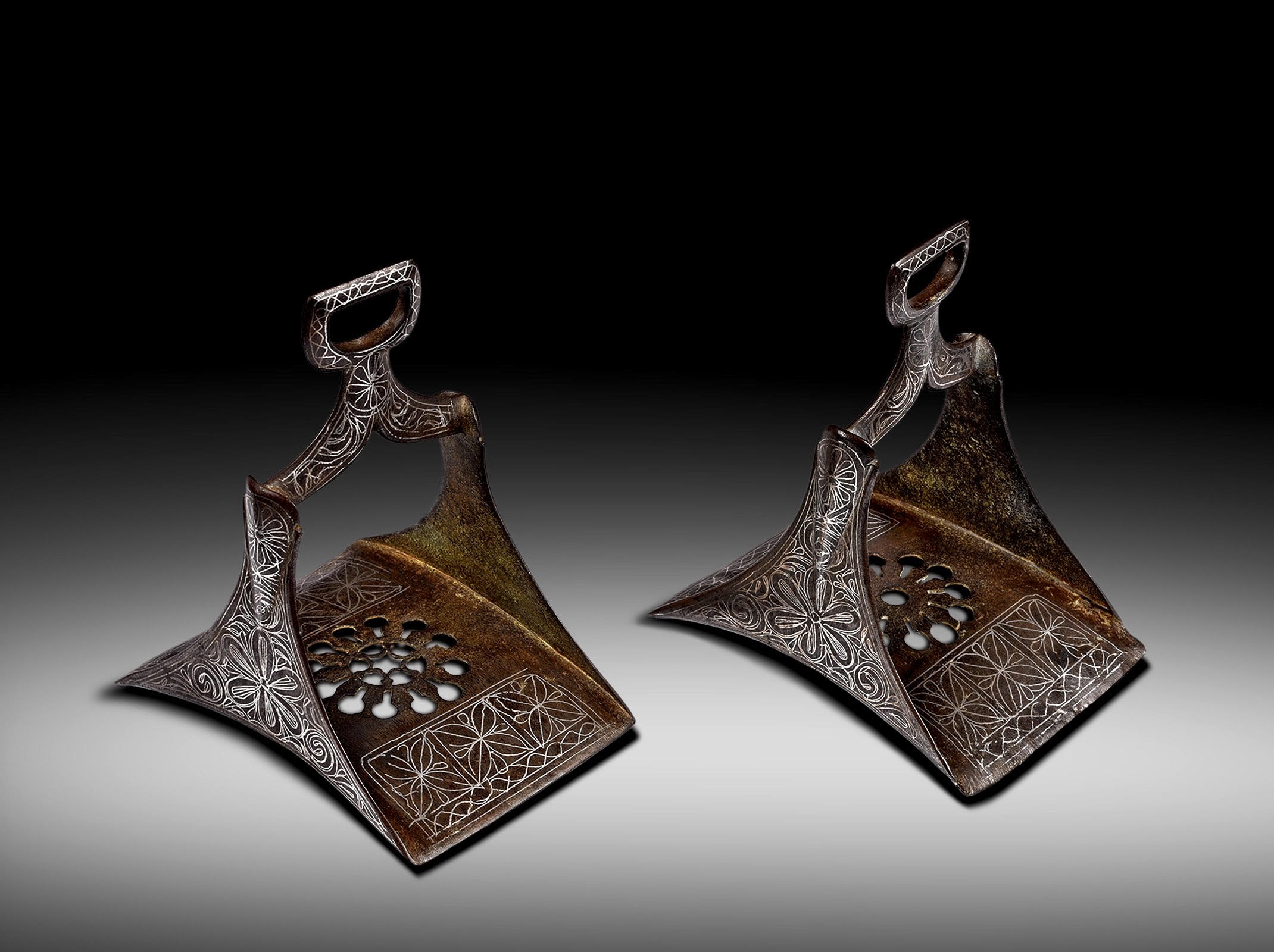 Condition Report:: | In acceptable overall condition, with some rubbing to the gilding, particularly to the undersides, as viewed.Footnotes: These stirrups display a closely worked floral design on both sides in the contour reservée technique, which stems from the Mamluk style of the fifteenth century. The framed medallions, floral scrolls and arched foot design are typical of the Mamluk and Ottoman period of the seventeenth century and later. An almost identical pair has been published in Mohamed 2007, p.357. |