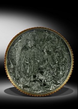 AN ENORMOUS COPPER TRAY ENGRAVED WITH FAMOUS TALE OF THE QUEEN OF SHEBA MEETS SOLOMON