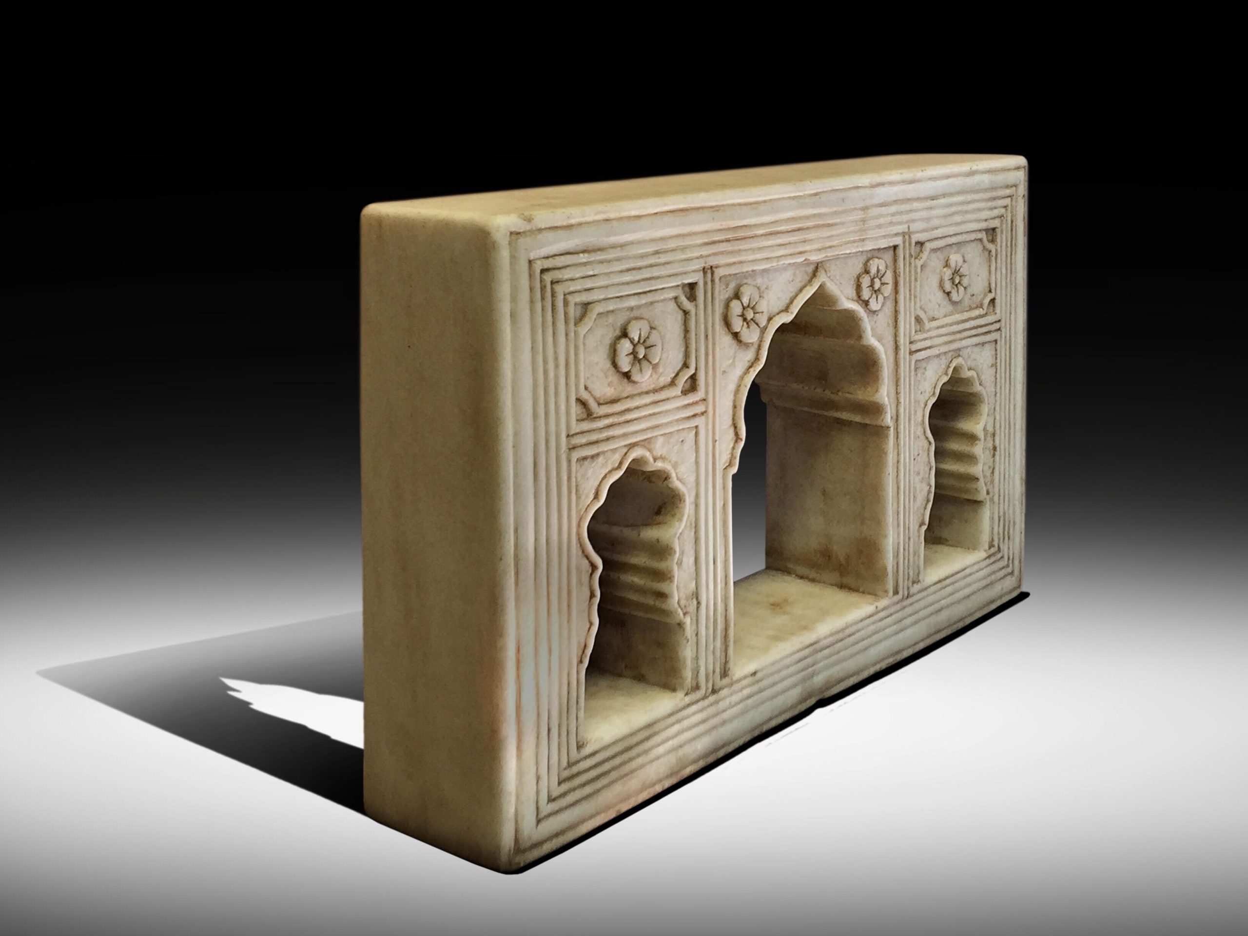 AN EXTRAORDINARY MUGHAL WHITE MARBLE NICHE DOUBLE-SIDED