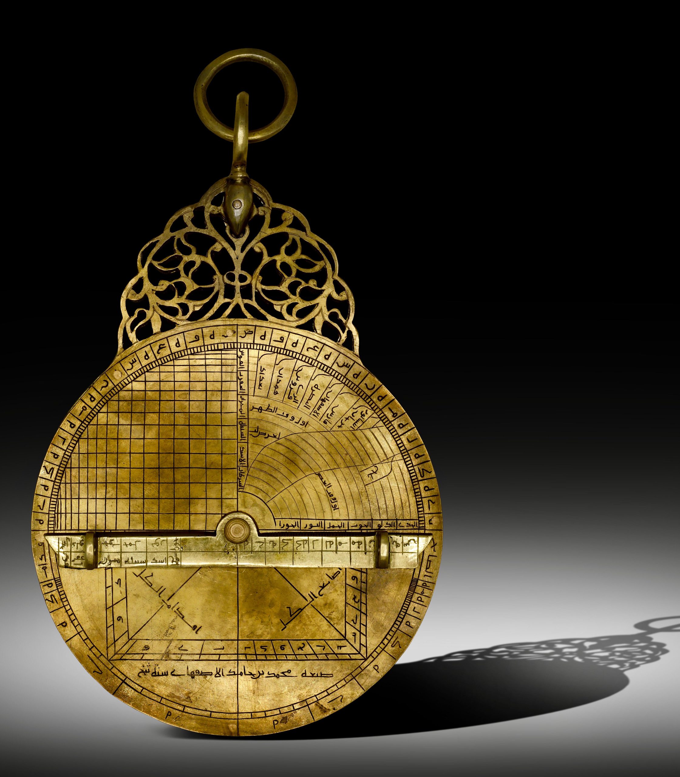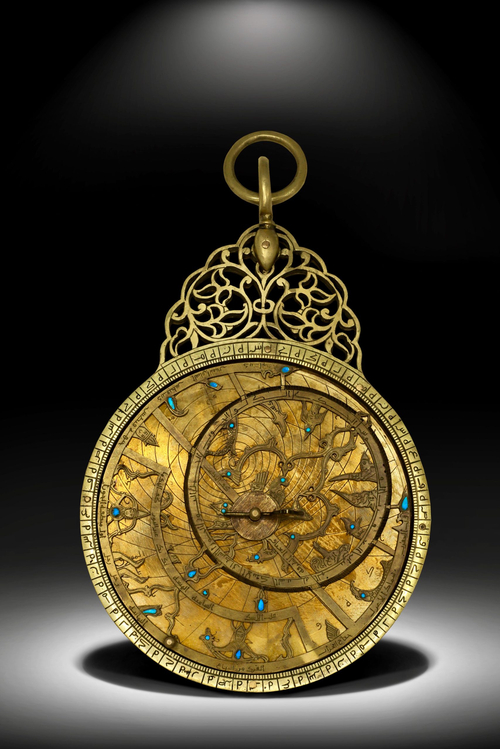 DESCRIPTION: | The throne is elegantly decorated à jour. Flowers decorate the scales and available space all over the ecliptic ring fitted with the band and lozenges formed turquoise stones and the interwoven floral are fitted fronds studs, the rete, as the back and front of edges of mater all Kufic engraved alphabetically,The mater is engraved with aall over the ecliptic ring on with the lozenges formed turquoise stones on gazetteer for 34 localities (bilâd), with their longitude (tûl), latitude (‘ard) and local direction of Mecca called qibla(inhirâf). This information is a small subset of a large corpus of geographical data for some 250 localities that was in circulation amongst the astronomers in northern Mesopotamia Southern and Eastern Anatolia, from the 1165 successive into the primary city of Mosul was under the Turkmen federation of the Ağ Qoyunlu, but in 1508 it was conquered by the Safavid dynasty of persia,onwards. There were two versions, one in which the qibla directions are very accurately computed, and another, the one used here, in which the qiblas do not always correspond to the geographical data. The information presented here contains numerous additional errors (it may be compared with the more sensible data on the splendid astrolabe of Shah Husayn – see Gunther, Astrolabes, introduction, pp. 24-26, and King, World-Maps, passim) |