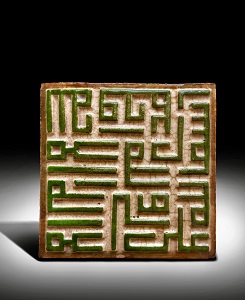 DESCRIPTION: | The inscription comprises geometric calligraphic in square Kufic. The tile is inscribed with the names of Allah, the Prophet Muhammad, and his son-in-law and successor Ali in square “Kufic script”.The earliest extant example of square kufic to survive is on a minaret erected in Ghazna by the Ghanznavid ruler Mas’ud III (R.AD 1098-1115) Most inscriptions of this type contain sacred names or short pious phrases of a general nature tile inscriptions in square kufic were especially popular in Persia during the 13th and 14th Centuries because of its similarity to Phagspa introduced in AD 1269 by the Yuan ruler. Particularly on insignia and seals,these seals were distributed to the Ilkhanids.Narratives:Blair Islamic Inscriptions, Edinburgh, 1998, PP. 82-88. |