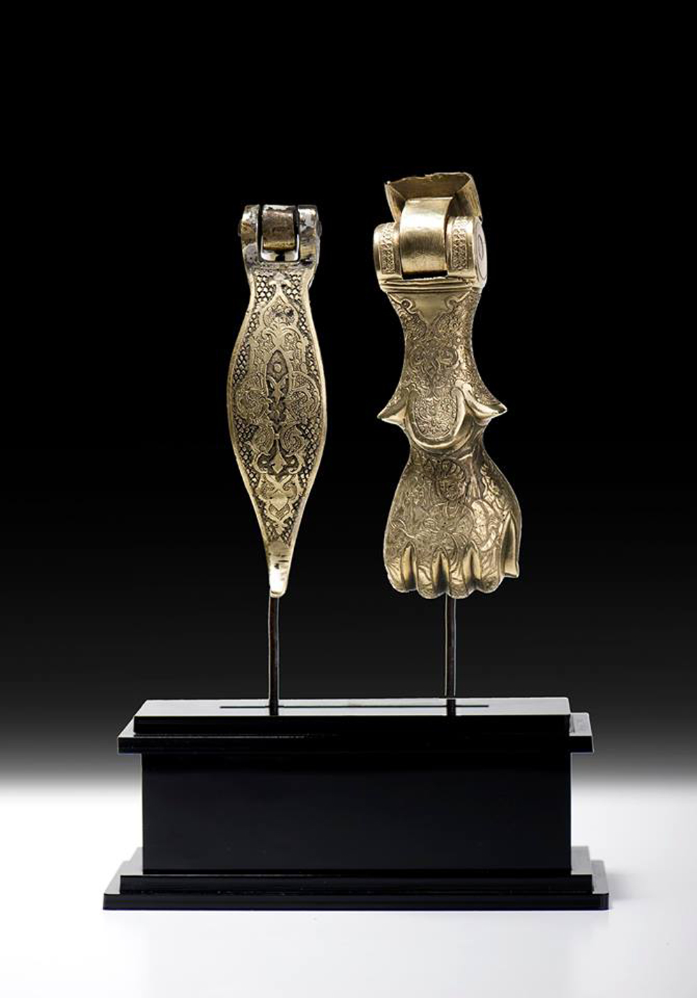 PAIR OF QAJAR BRASS DOOR KNOCKERS