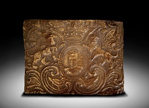 PERSIAN QAJAR PICTORIAL BRASS PLAQUE