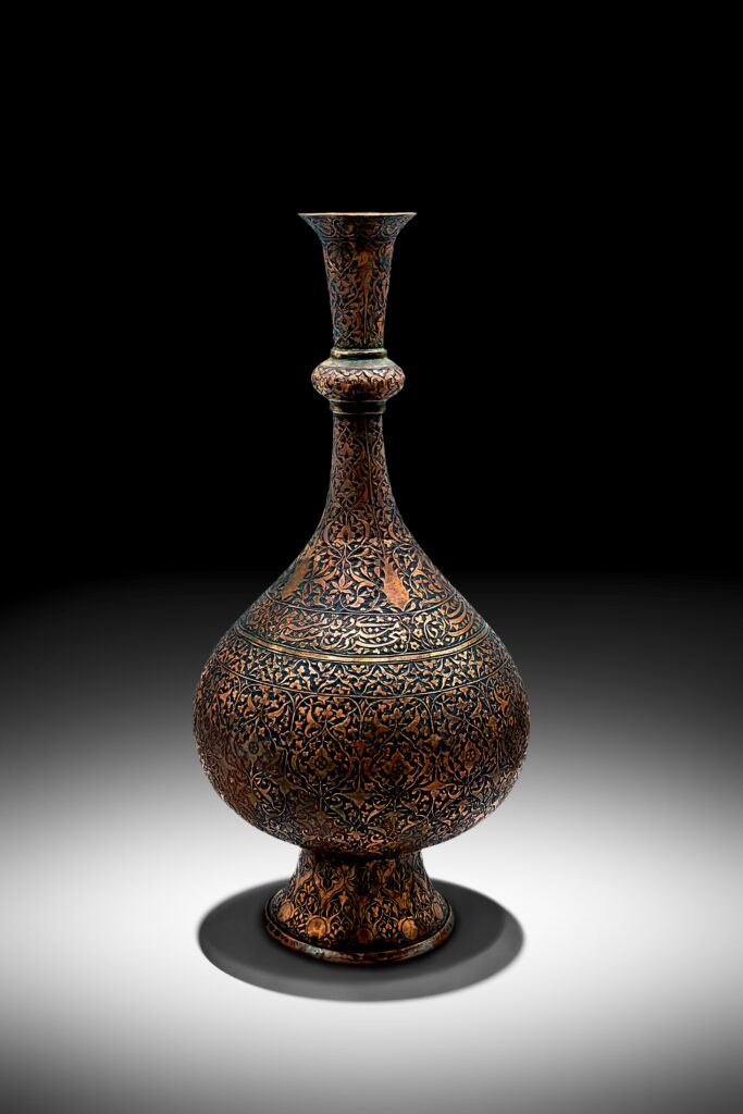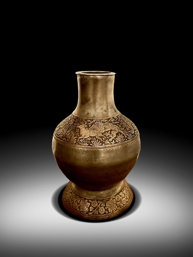 A MUGHAL ENGRAVED BRONZE HOOKAH BASE INDO PERSIAN